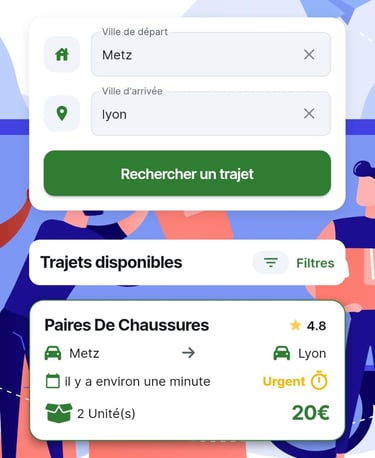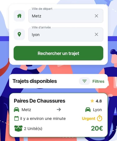 Votre annonce apparaît instantanément dans la liste des colis disponibles à transporter.